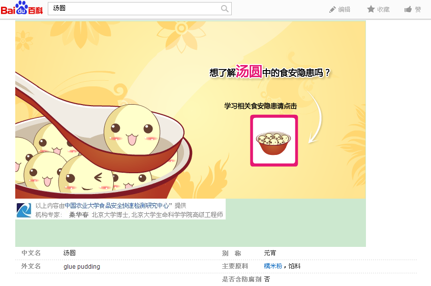 元宵佳節,想了解湯圓中的食安隱患嗎?欲了解詳情請點擊百度百科進行進一步了解。