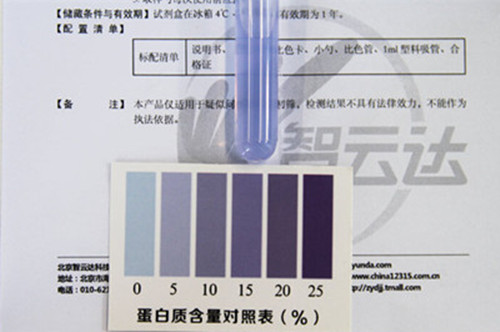 牛奶檢測結果顯示這6款兒童牛奶中蛋白質含量最豐富的是圣牧和旺仔,為3.2g/100g;最低的是三元和新希望,為2.9 g/100g,一般情況下牛奶中的蛋白質含量為3 g/100g。國標規定對于兒童牛奶外加營養十分有限,選真正好牛奶要關注蛋白質,牛奶本身的營養主要來自牛奶中蛋白質的含量。牛奶中蛋白質含量也是判斷乳品質量的指標之一,而北京智云達研發的這款檢測乳品中蛋白質含量的食品檢測盒,測定時間短,操作簡便,奶粉和液態奶都可進行牛奶檢測,測定結果易于判斷。