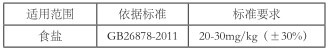 表 1 食鹽中碘含量的國(guó)家標(biāo)準(zhǔn)(以碘元素計(jì))