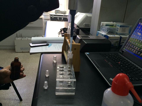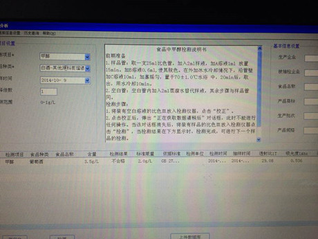 3、放入PCS食品安全快速檢測(cè)儀中檢測(cè),檢測(cè)結(jié)果,甲醇含量為3.5g/L,大于國家標(biāo)準(zhǔn)400mg/L.