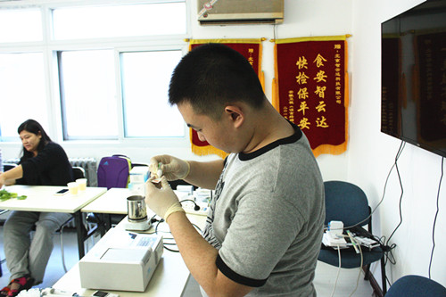 下午由河北農(nóng)業(yè)大學(xué)食品質(zhì)量與安全專業(yè)于鳴訓(xùn)講師帶領(lǐng)學(xué)員自己動手操作檢測了油菜中的農(nóng)藥殘留,牛奶中三聚氰胺檢測、枸杞二氧化硫檢測、亞硝酸鹽檢測,地溝油檢測等。學(xué)員熱情度很高,課程結(jié)束了還意猶未盡,在輕松的學(xué)習(xí)氛圍中進(jìn)一步了解快檢,應(yīng)用快檢。