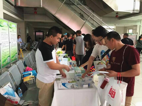 技術人員現場攜帶乳制品中蛋白質速測盒、餐飲具表面潔凈度速測盒、二氧化硫速測盒、鹽酸克倫特羅速測盒、快檢家庭套裝、水無憂速測卡、奶無憂膠體金卡、地溝油多參數快篩試劑盒等多款快檢產品,吸引了一批有一批人群圍觀,技術人員并為感興趣的做現場演示。