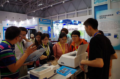 下午由北京智云達科技有限公司在N3展館的食品安全與質量檢測體驗互動示范區做快檢實操培訓,技術人員主要帶領大家做“地溝油”檢測、粉絲、銀耳、冰糖中二氧化硫的快速檢測、蔬菜中的農藥殘留檢測、牛奶中的三聚氰胺檢測、瘦肉中“瘦肉精”的快速檢測等實驗。通過帶領大家親自動手操作,讓大家進一步了解快檢,體會到快檢的優勢。