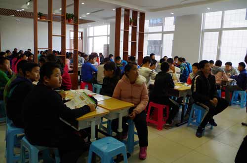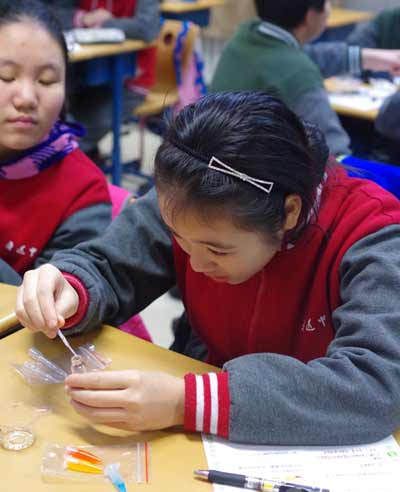 參加課程的中學(xué)生在認(rèn)真做實(shí)驗(yàn)