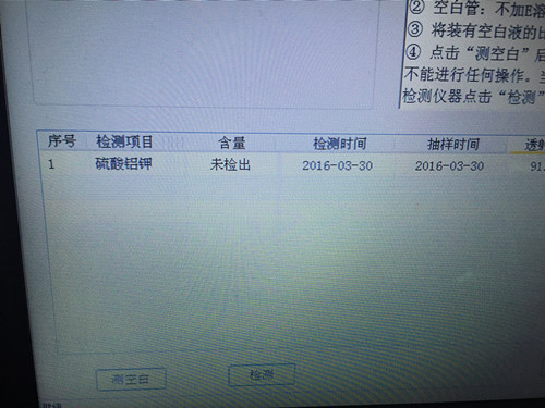 將裝有空白液和樣品液的比色皿分別放入儀器中,檢出樣品中均含有鋁,國標中規定,鋁允許在粉絲、粉條中作為添加劑使用,殘留量小于等于200 mg/kg。