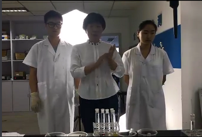 北京智云達技術工程師楊老師和趙老師將準備好的果汁檢測樣品分別進行標號,通過智云達自主研發生產的快速檢測產品:真假果汁速測盒,對果汁樣品進行快速檢測試驗。