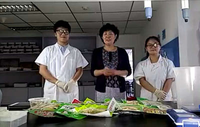 北京智云達技術工程師楊老師和王老師首先對不同樣品通過使用北京智云達自主研發生產的快速檢測產品:甲醛速測管,對泡椒鳳爪樣品進行甲醛含量的檢測。
