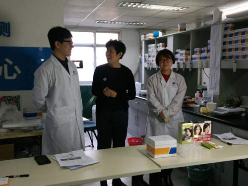 北京智云達技術工程師楊老師和王老師首先對樣品取樣,再通過使用北京智云達自主研發生產的快速檢測產品:化妝品苯二胺類快篩試劑盒,對樣品溶液進行檢測。