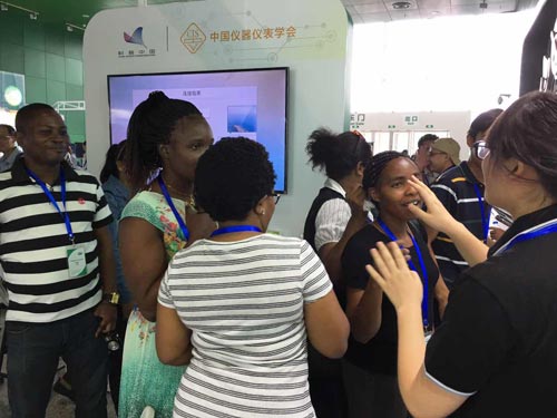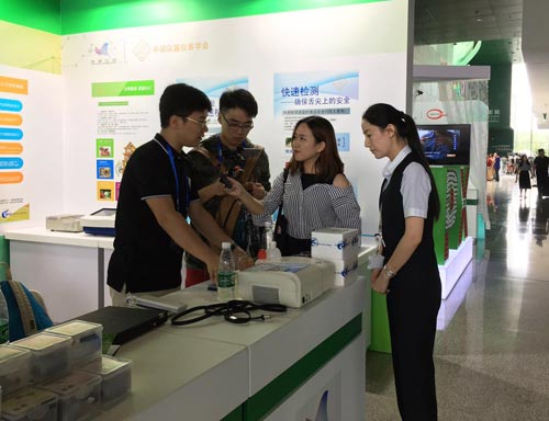 外國(guó)友人現(xiàn)場(chǎng)咨詢智云達(dá)食品安全快速檢測(cè)產(chǎn)品