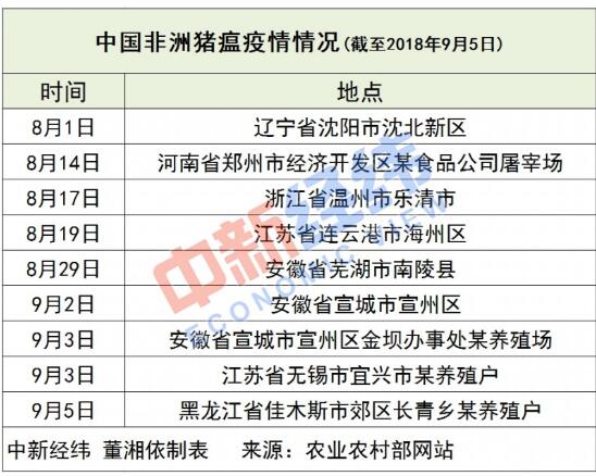 9月5日,據(jù)農(nóng)業(yè)農(nóng)村部網(wǎng)站消息,農(nóng)業(yè)農(nóng)村部新聞辦公室發(fā)布,黑龍江省佳木斯市郊區(qū)長(zhǎng)青鄉(xiāng)發(fā)生生豬非洲豬瘟疫情。中新經(jīng)緯客戶端注意到,自今年8月初以來,中國(guó)已發(fā)生9起非洲豬瘟疫情。