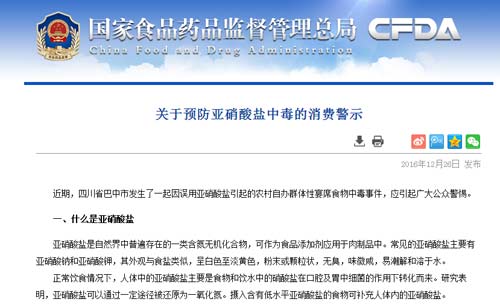 本文關鍵詞:四川 30人 亞硝酸鹽 中毒 食藥總局