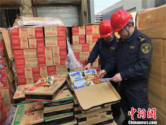 在位于寧波北侖郭巨街道的固廢處置有限公司中,各式包裝的方便面、面包等“洋零食”整齊排列,待海關工作人員清點核對后,這批堆成“小山狀”的食品被投入垃圾池進行集中焚燒銷毀。