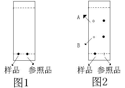 使用紫外燈在陰暗環境下近距離照射的硅膠板如圖2,若位置A或B有點存在即說明有磺脲類物質(除A和B 位置之外,其他位置的點與本次測試無關)。