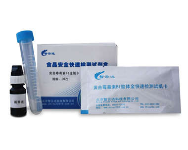 黃曲霉毒素 B1(Aflatoxin B1 簡寫為 AFB1)是目前已知的化學(xué)物質(zhì)中致癌性最強(qiáng)的一種。黃曲霉毒素 B1 對(duì)人和若干動(dòng)物具有強(qiáng)烈的毒性,其毒性作用主要是對(duì)肝臟的損害。國家質(zhì)檢總局規(guī)定黃曲霉毒素 B1 是大部分食品的必檢項(xiàng)目之一。本品的檢測靈敏度為 5ng/ml(5ppb)。