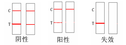 無效反應(yīng):如果測(cè)試結(jié)果C線未出現(xiàn),表示此試劑已失效。