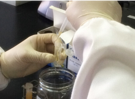 1.用 0.2ml 塑料吸管取蜂蜜樣品滴加 1 滴到離心管中,再加入 2ml 蒸餾水(或純凈水),蓋緊上蓋,上下搖動 30 次。