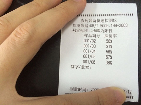 PS:技術工程師陳磊表示,ZYD-NP6農藥殘留檢測儀只適用于有機磷和氨基甲酸酯類農藥殘留的快速檢測。快速檢測作為初篩,不具備法律效應,農殘疑似超標想要進步一部了解更精準數據可以到國家權威檢測機構進行檢測。