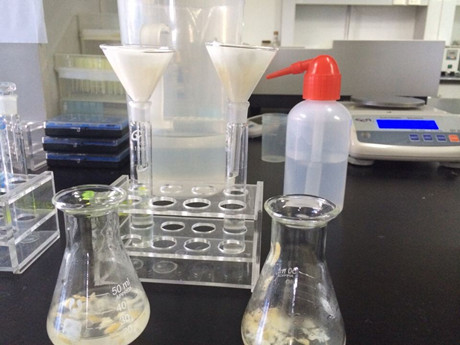 1、 將樣品粉碎,稱取粉碎的樣品1.0g,于50mL三角瓶中。