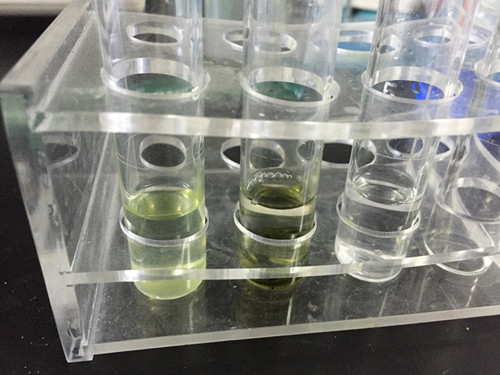 之后往吹干的比色管加入3ml緩沖液,50ul酶,20ul顯色劑靜置10min作為樣品管;