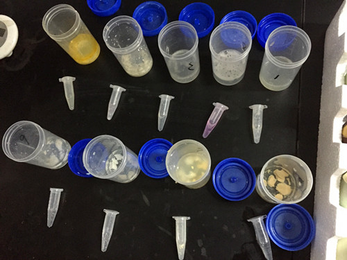 由于我們的咸鴨蛋還有沒熟的,因此取樣針對(duì)固液采取不同取樣方法,對(duì)于液體采用移液器進(jìn)行取樣,對(duì)固態(tài)的直接稱重,為了保證取樣有代表性,我們都選取蛋黃和蛋清都采樣。