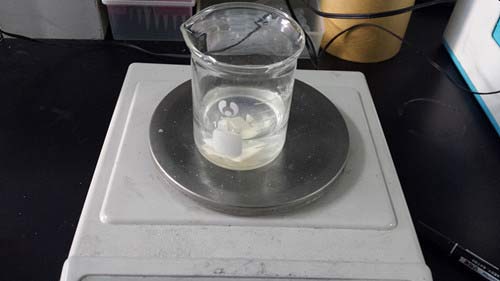 (1)取樣:由于寄到的餃子皮已經干掉,所以我們將其白掰碎、磨粉,取1g于試管中,加