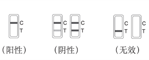 無效:位置C不顯示出條帶,則無論位置T顯示出條帶與否,該速測卡均判為無效,請重測。
