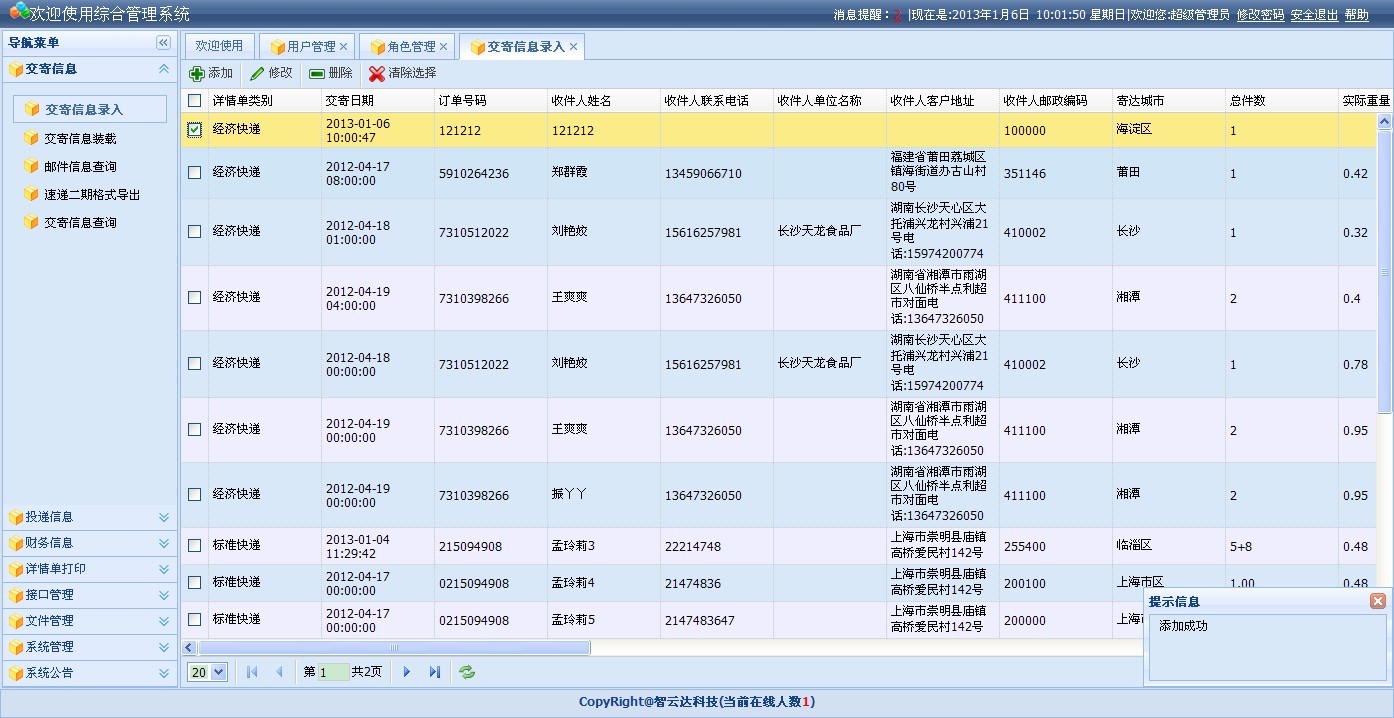 上海郵政速遞綜合管理平臺—詳情單打印
